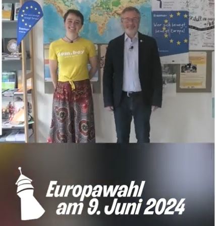 Studentin Amelie Endl, Bachelorstudiengänge Soziale Arbeit und Diakonik, und Präsident Prof. Dr. Thomas Popp sprechen sich stellvertretend für die ganze Hochschule für Europa aus. Hier erklären sie, warum: Youtube-Link. Das instagram-Reel ist Teil der Kampagne des Europabüros der Stadt Nürnberg zur Europawahl am 9. Juni 2024.