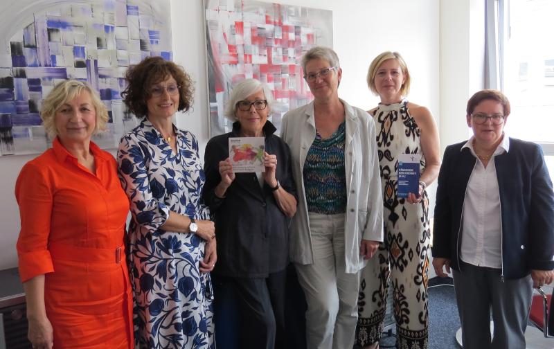 Bild (v.l.n.r.): Prof. Dr. Helene Ignatzi, Vizepräsidentin, Prof. Dr. Roswitha Sommer-Himmel, Studiengangsleitung, Monika Bouhon, Bouhon Stiftung, Dr. Sabine Richter, Friedrich-Alexander-Universität Erlangen-Nürnberg, Prof. Dr. Tanja Brandl-Götz, Studiengangsleitung, Prof. Dr. Brigitte Bürkle, Vizepräsidentin.